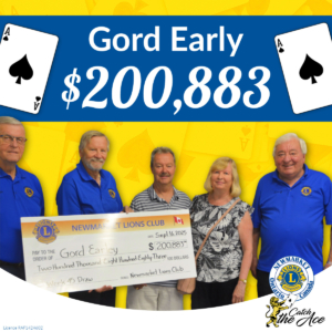 Week 10 Catch the Ace winner Ken Sargent, collects his winnings at the Farmer’s market, from Newmarket Lions President Rick Metcalfe. This fundraising lottery supports Southlake Regional Hospital’s Mental Health programme!