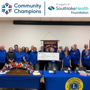 The Newmarket Lions Club is a major contributor to the Southlake Regional Health Centre.